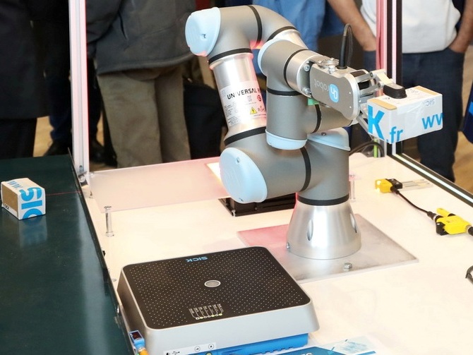 Notre partenaire Sick a présenté ses solutions de sécurité en équipant le robot UR3 d’une cellule de robotique coopérative. Cette cellule était composée de scrutateurs laser et d’un capteur de vision directement intégré et géré dans l’interface URCap.