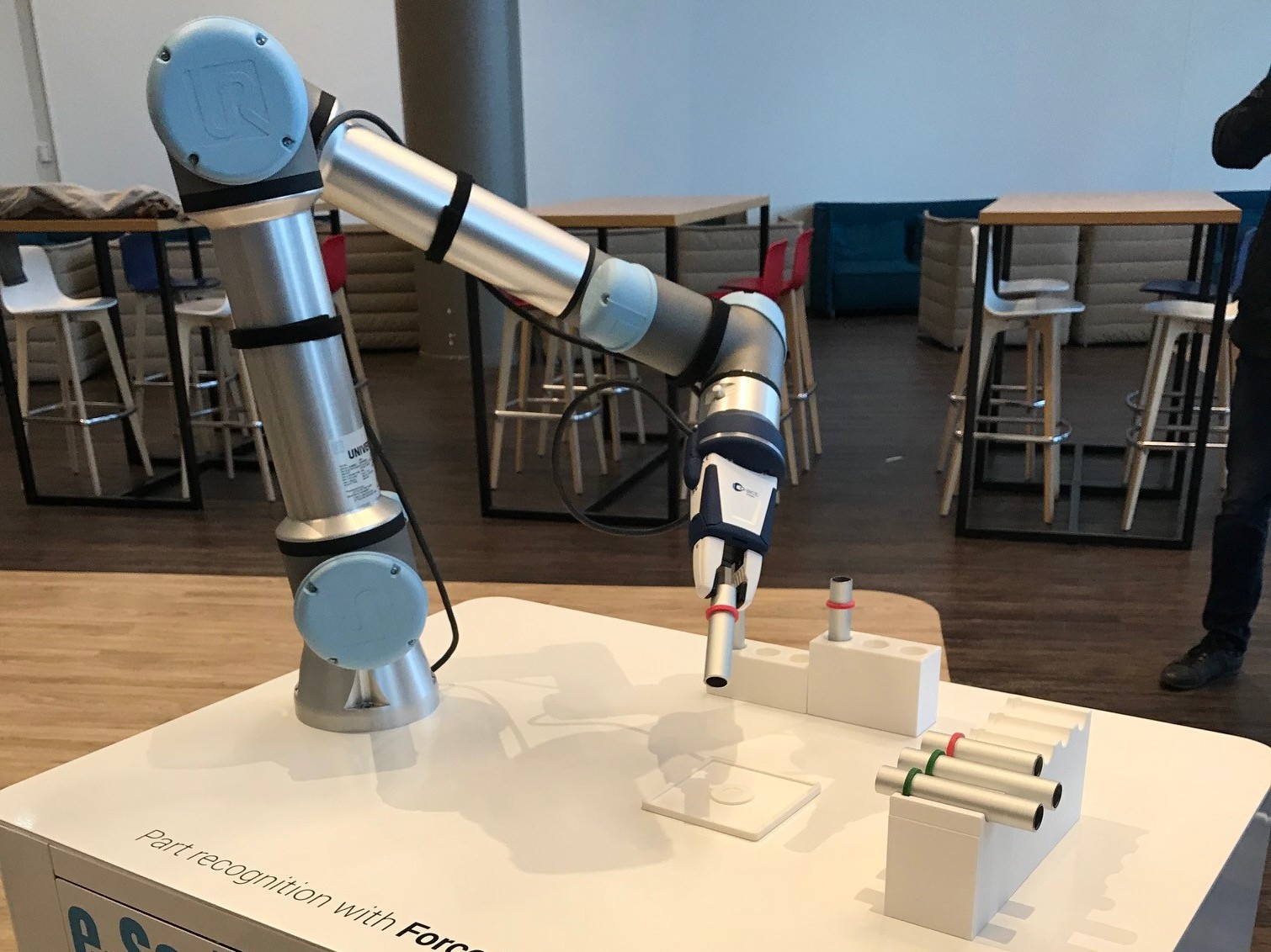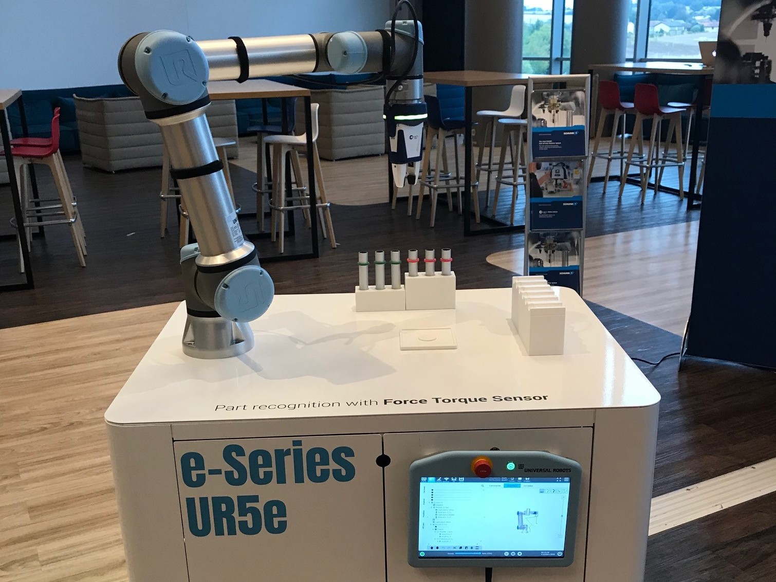 Pendant la journée, les visiteurs ont pu se familiariser avec la nouvelle génération de robots UR e-series munis de la pince collaborative Schunk. Ce workshop « automatisation collaborative » a laissé place à de nombreux échanges autour de ces robots et de leurs accessoires.