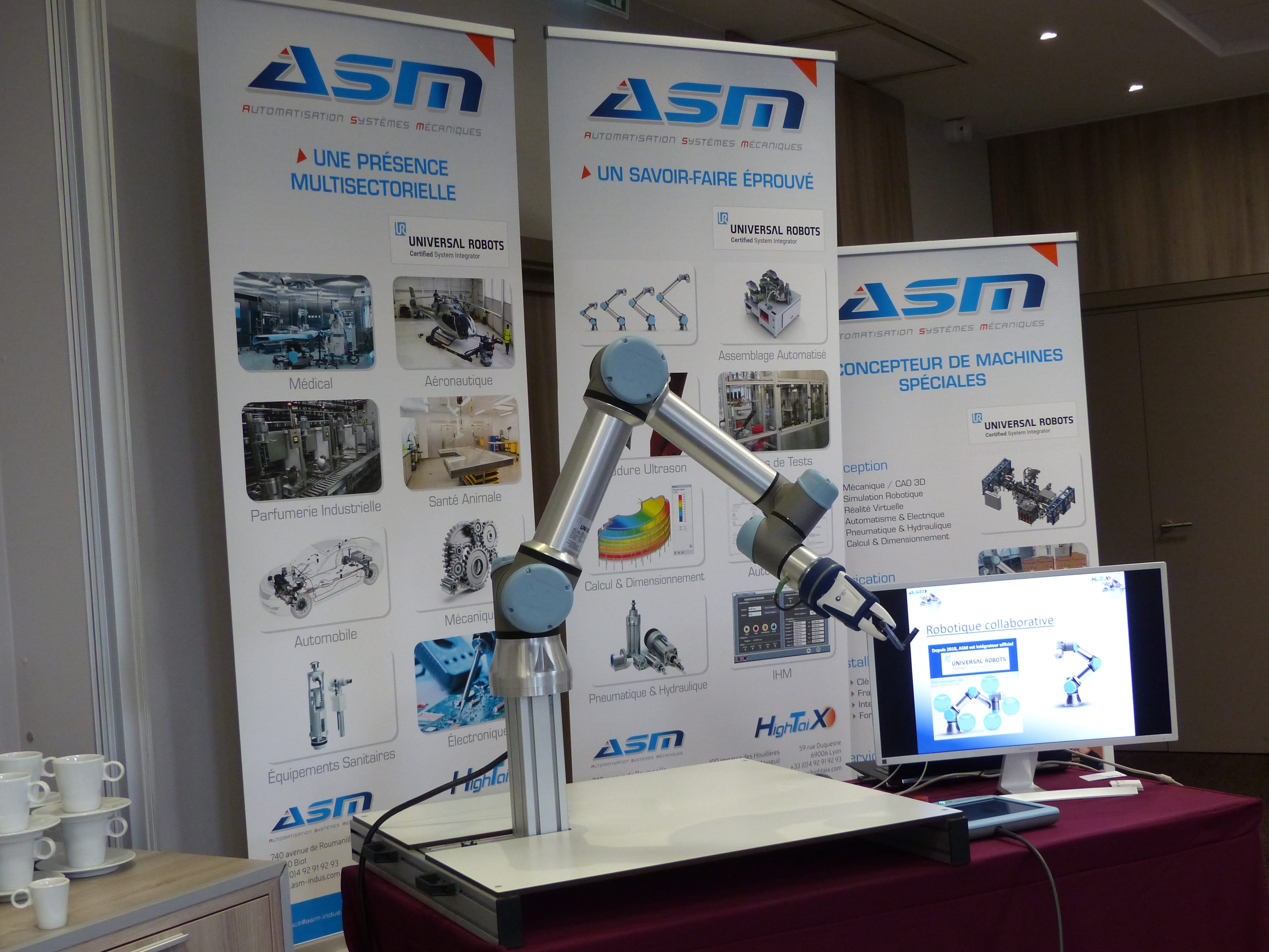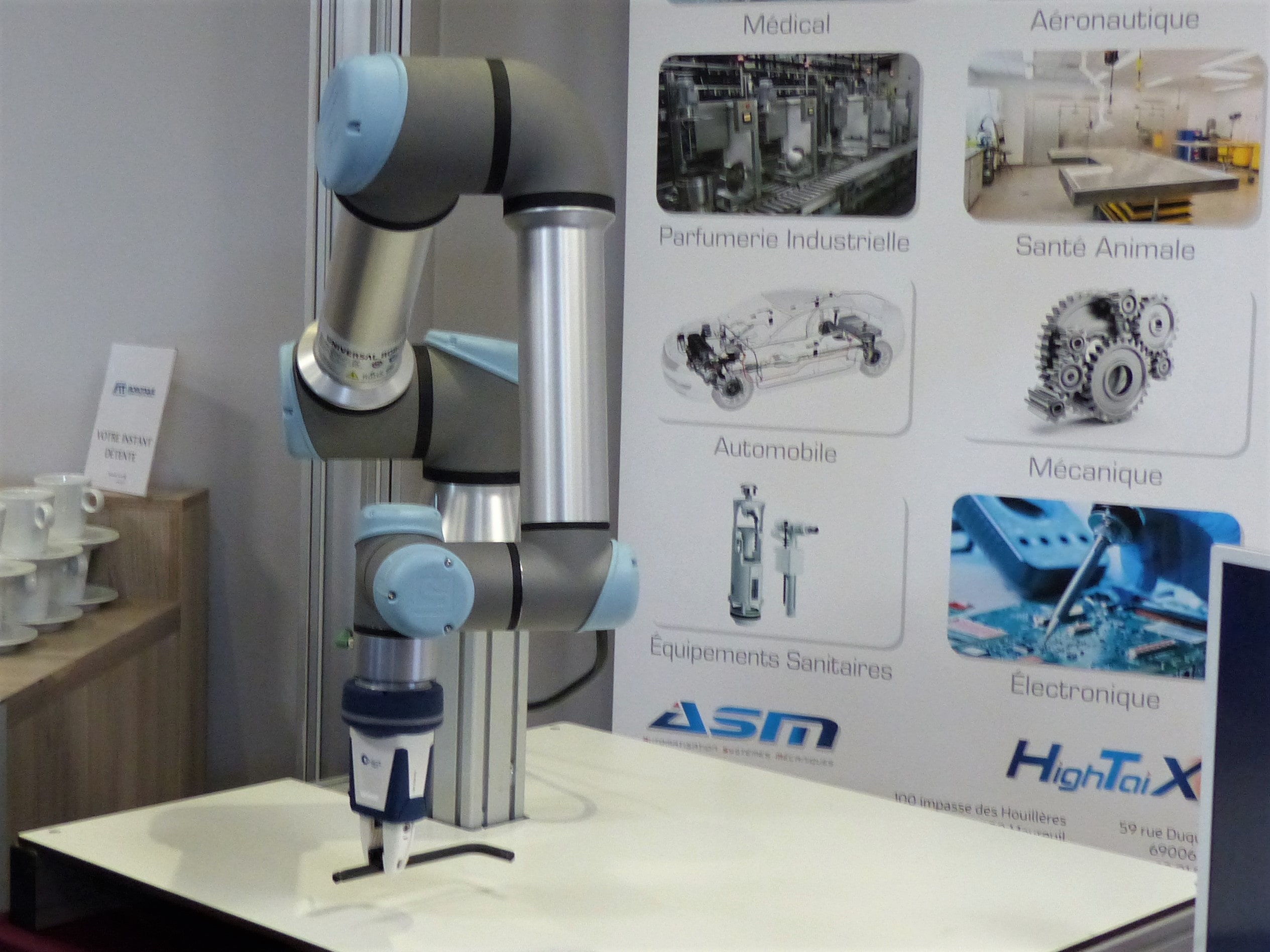 Pour compléter les échanges avec les visiteurs, FIT ROBOTIQUE a fait appel à un troisième partenaire. La société HIGHTAIX, intégrateur certifié UR, est venue à la rencontre de nos invités pour répondre à leurs questions concernant l’intégration des cobots et leur proposer des solutions adaptées à leurs besoins spécifiques.