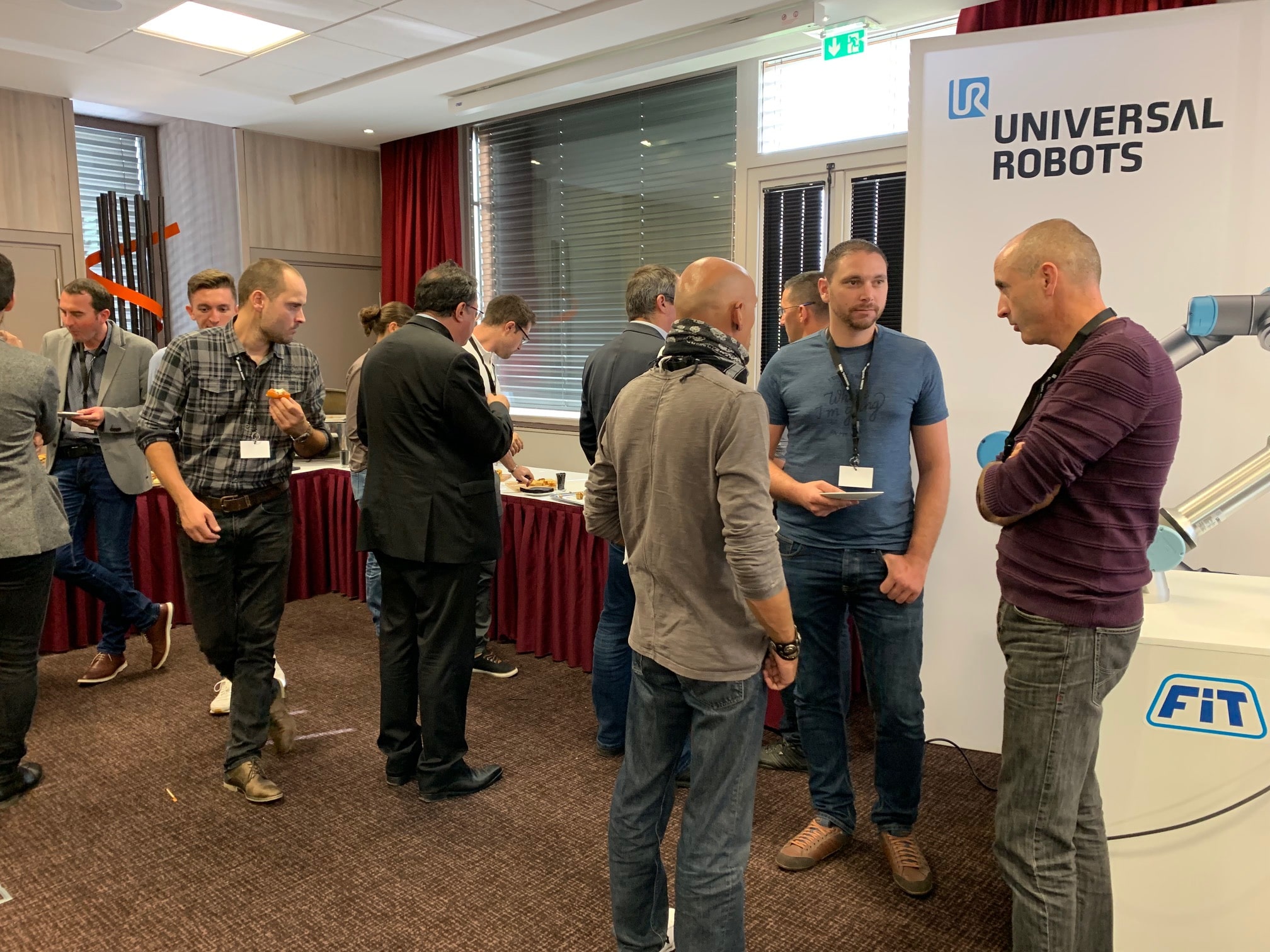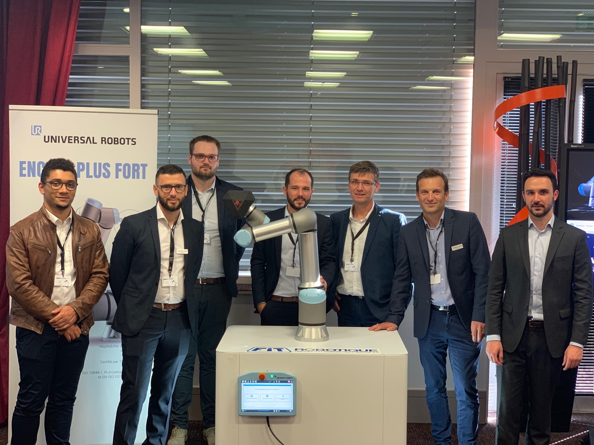 Le mois de la cobotique avec FIT ROBOTIQUE et UNIVERSAL ROBOTS s’est finalement terminé autour d’un cocktail, dernier instant autour de l’UR16e et des autres robots. Nos invités en ont profité pour discuter avec notre équipe et nos partenaires, pour voir les robots en action, pour échanger sur un projet et pour s’initier à la programmation d’un cobot.