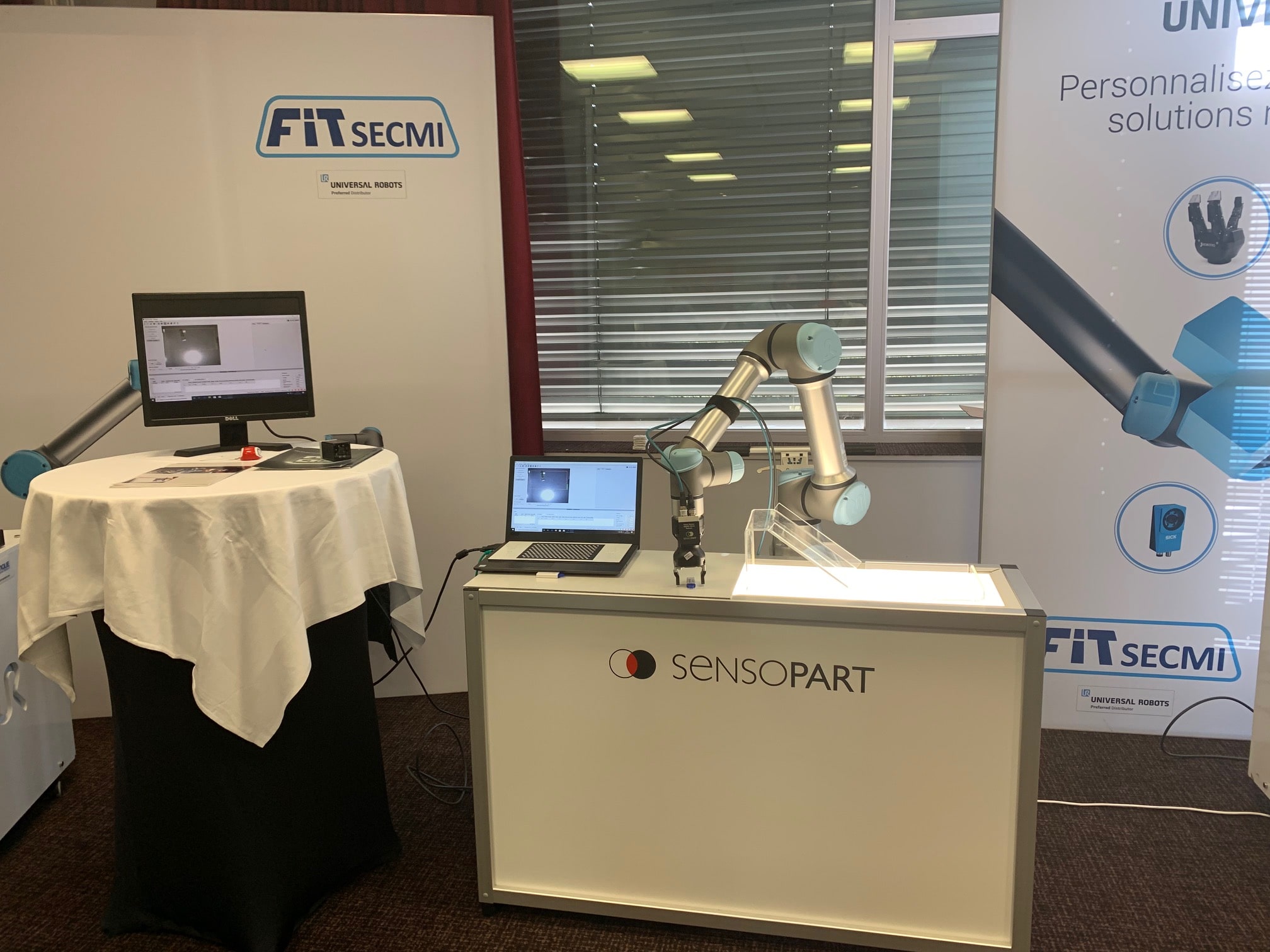 SENSOPART participait également à la journée de la cobotique pour présenter les capteurs de vision qu’il est possible d’intégrer aux robots UR. Cet accessoire installé via l’application URCaps (logiciel développé pour faciliter les échanges de données entre l’accessoire et le robot), a permis aux invités d’assister à des démonstrations de Pick and Place.