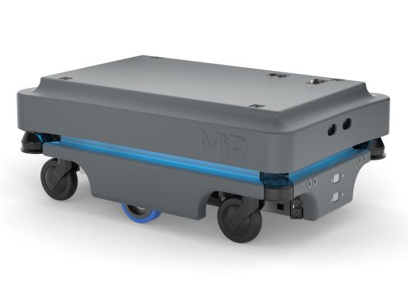 Le robot MiR200 autonome peut déplacer des charges utiles jusqu’à 200kg (440 lb) et transporter des charges jusqu’à 500 kg (1 100 lb) avec le crochet de traction MiRHook200.