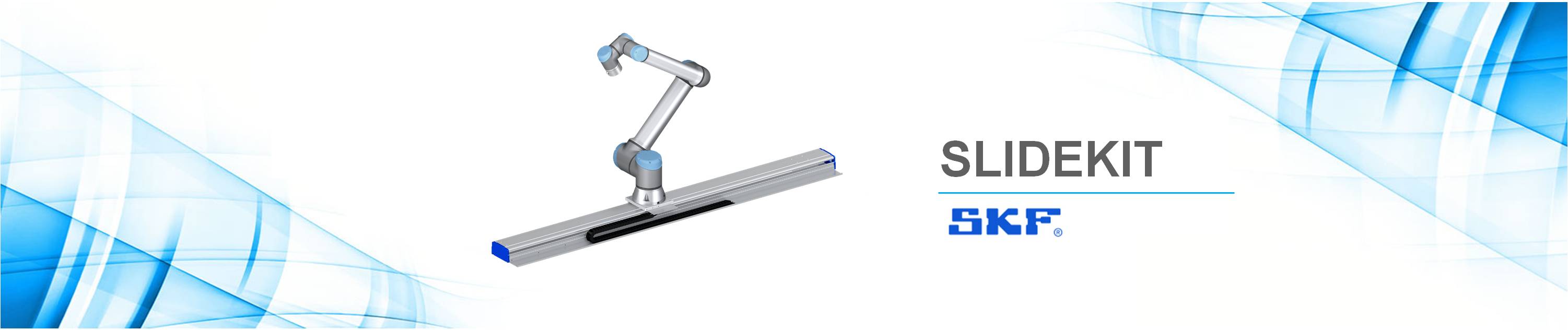Le SLIDEKIT fournit une solution facile à intégrer permettant d’ajouter un réglage d’axe horizontal pour étendre la portée du cobot.